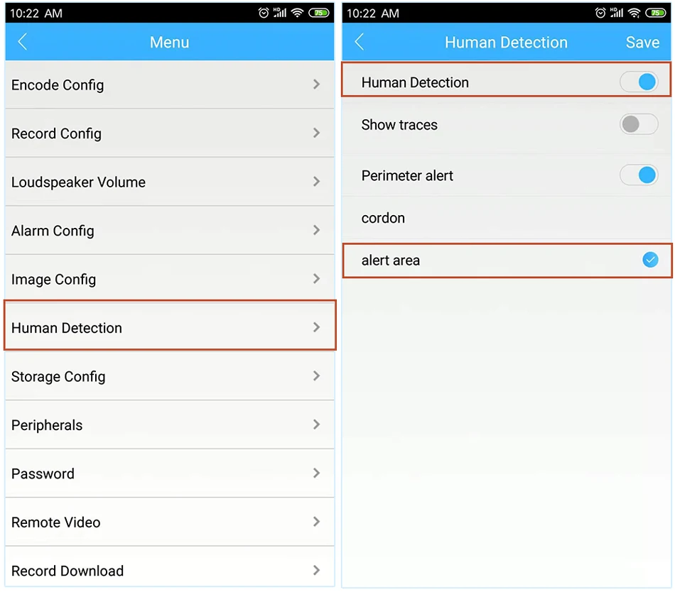누군가가 촬영 지역에 침입하면 카메라에서 알람 소리가 나고 알람 메시지가 전화 APP로 푸시됩니다.