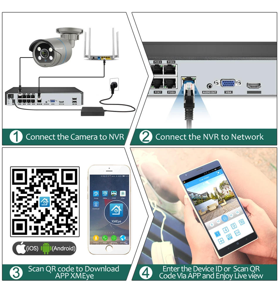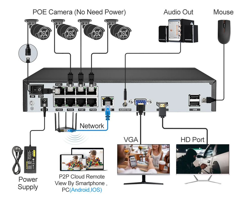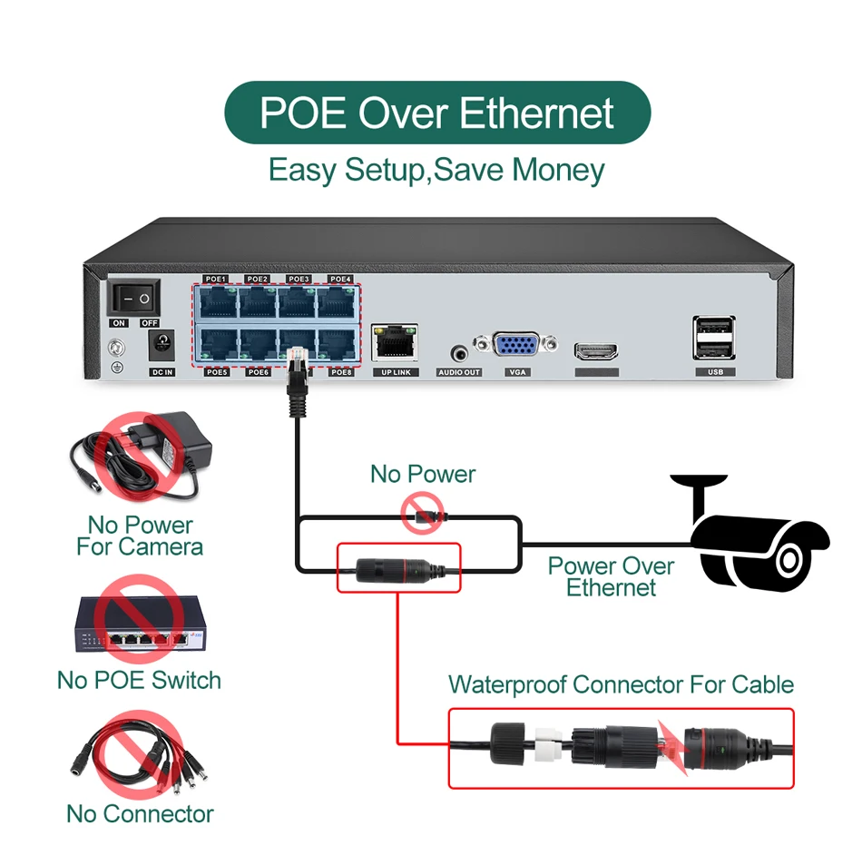 1, 우리의 POE NVR은 8CH NVR이며 최대 8 대의 카메라를 연결할 수 있습니다. POE 스위치 하나만 구입하면 NVR은 최대 16CH NVR까지 구입할 수 있습니다.