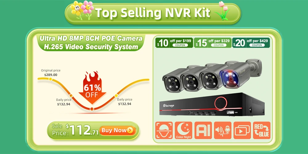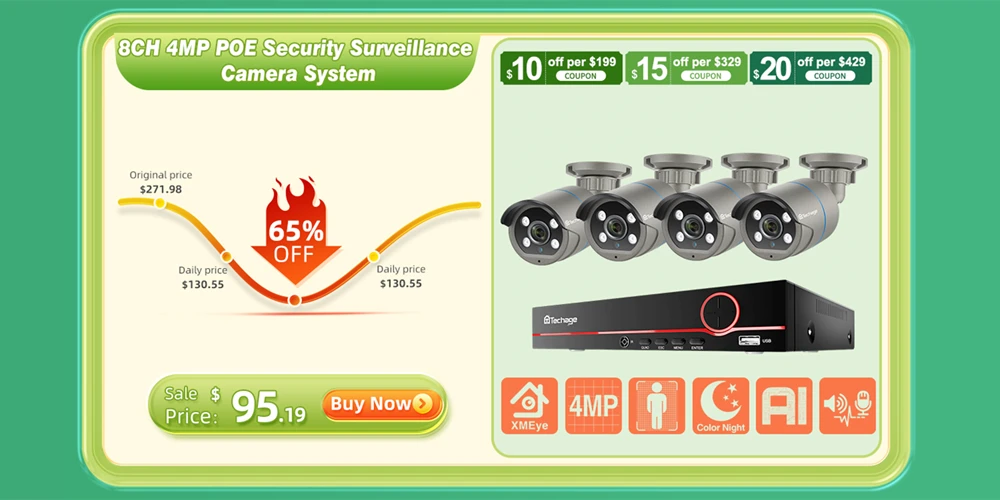 여러분께 소개할 이 제품은 Techage-8CH 4MP POE 보안 감시 카메라 시스템 키트 AI 얼굴 감지 오디오 기록 IP 카메라으로, 여러분의 생활을 더욱 편리하고 풍요롭게 만들어 줄 것입니다. 아래에서 제품의 특징, 사용 방법, 그리고 왜 이 제품이 여러분에게 이상적인지에 대한 상세한 정보를 제공하겠습니다. 정성껏 준비한 상품 설명을 통해, 여러분이 필요로 하는 최적의 선택을 할 수 있도록 도와드릴 것입니다.