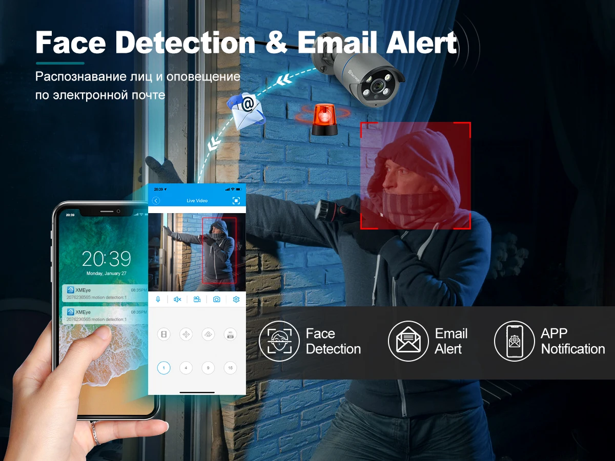 스마트 AI 얼굴/인간 감지 및 이메일 알림 및 알람 소리
