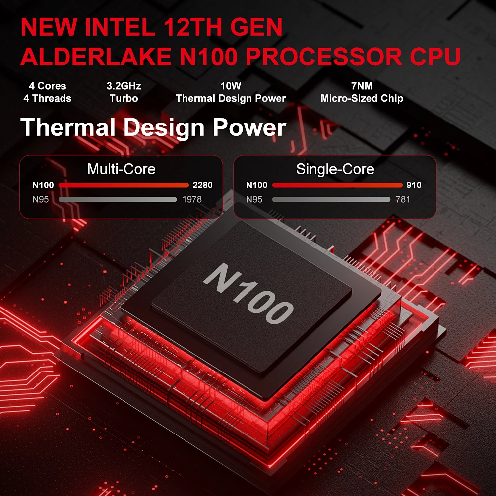 인텔® 재스퍼 레이크 셀러론 프로세서 N100, 4 코어 및 4 스레드. (최대 3.4GHz)