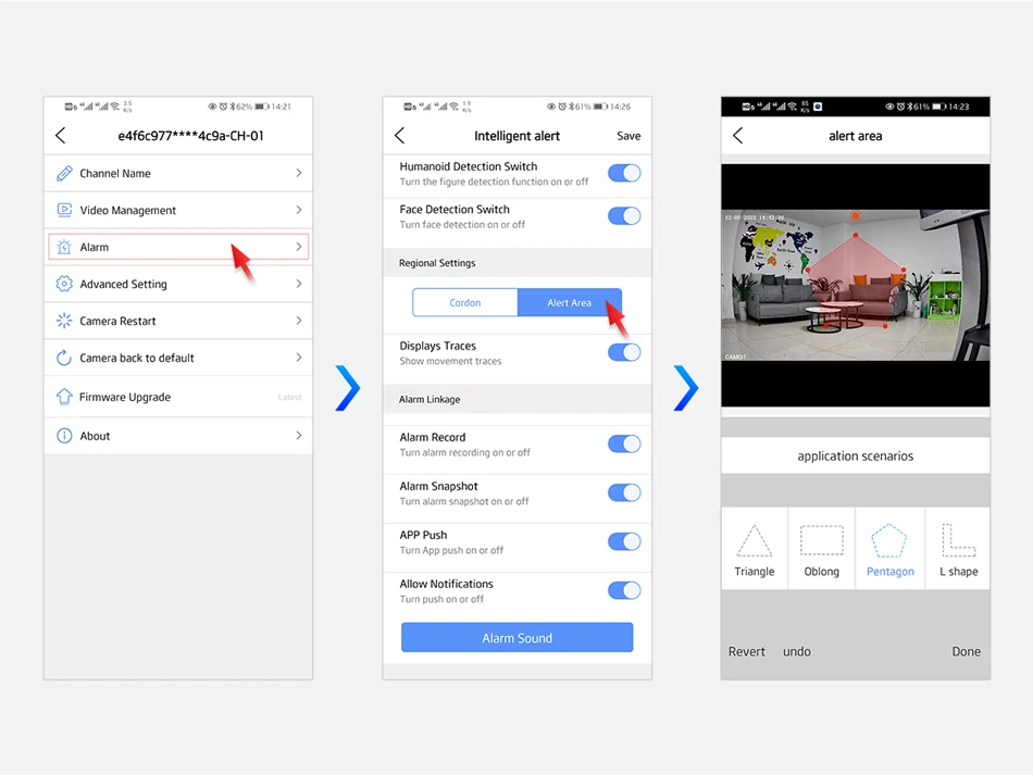 누군가가 알람 영역을 통과할 때만 카메라가 알람 메시지를 전송하여 알람 정확도를 높입니다.