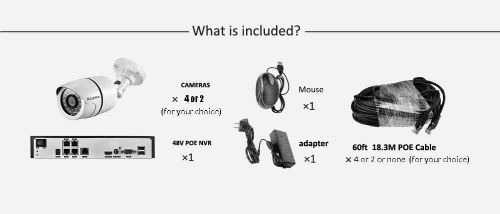 4 (또는 2 ) x 2.0 1080P POE 메가픽셀 카메라 (선택)
