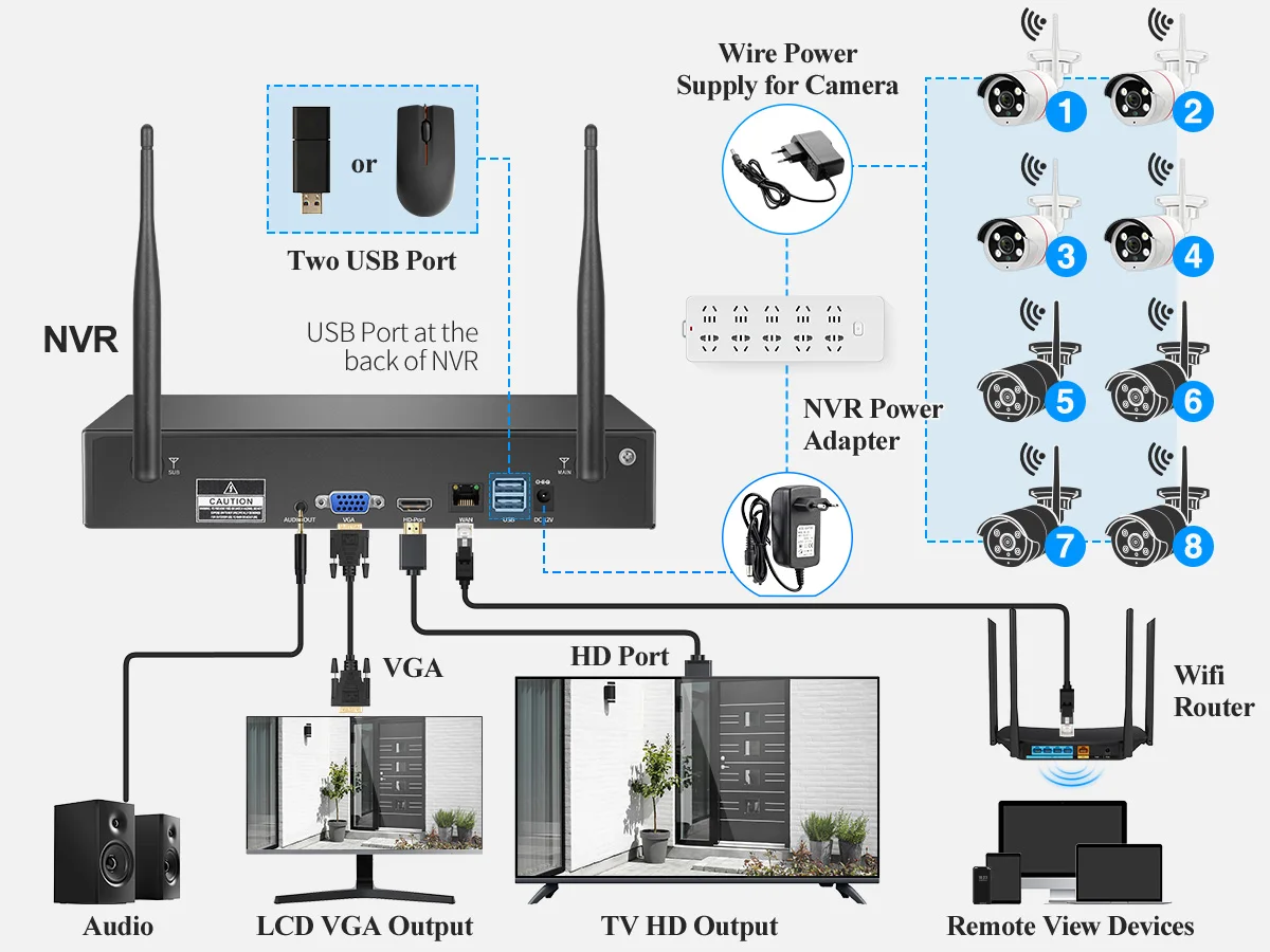 3. 8 채널 NVR, 최대 8 대의 카메라 지원;