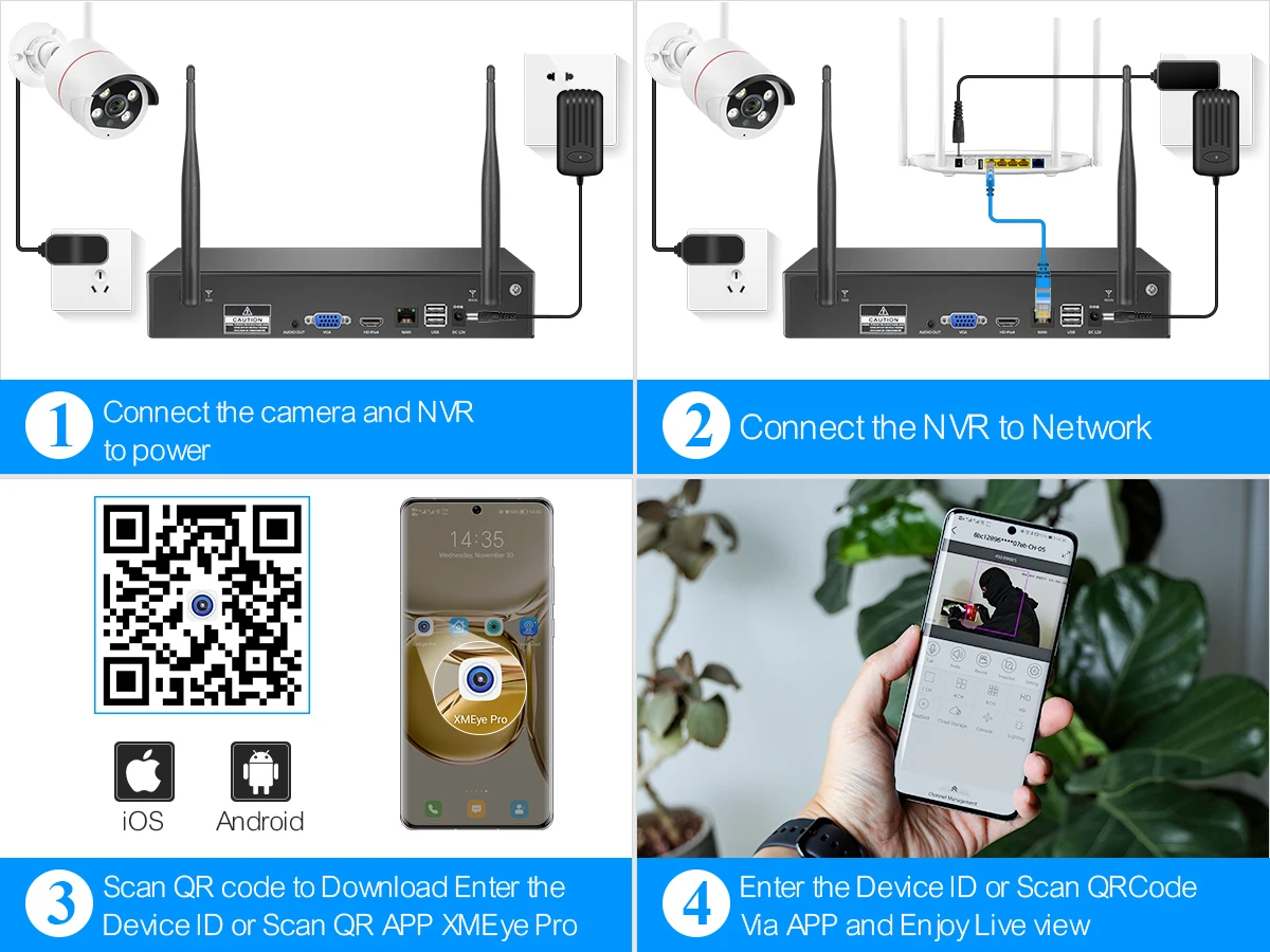 플러그 앤 플레이, 카메라와 NVR 간 무선 연결, 복잡한 케이블 없음
