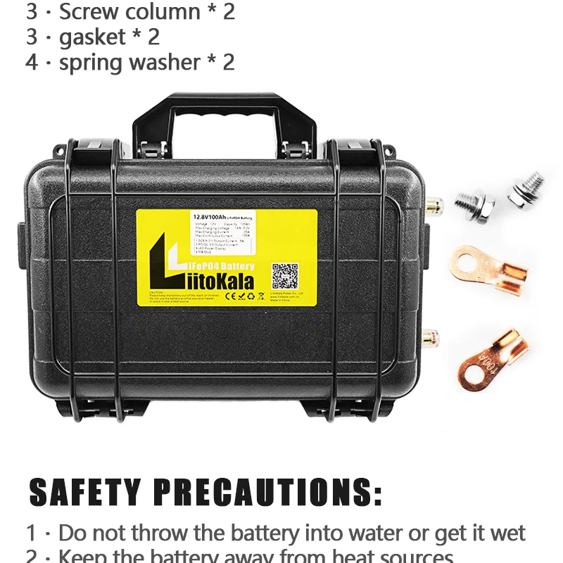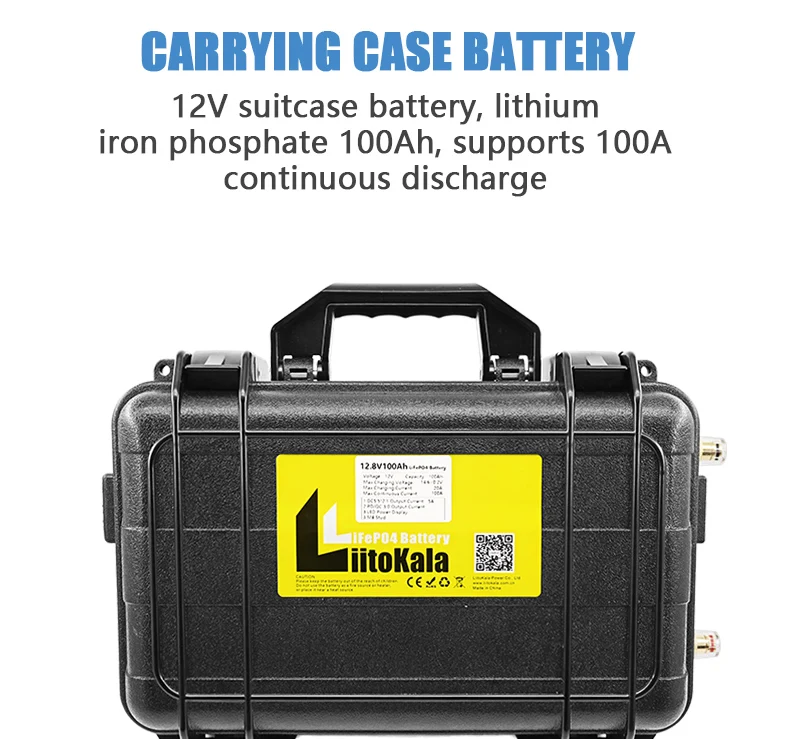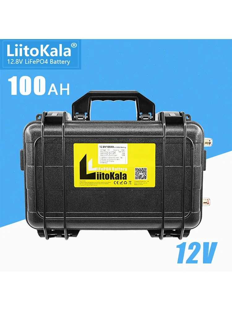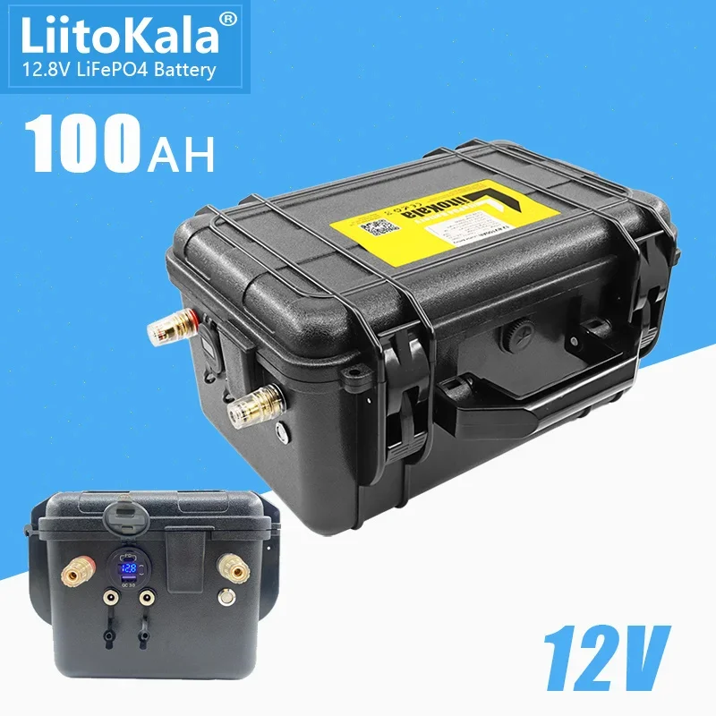 LiitoKala 태양광 캠핑카 요트 인버터 엔진 모토용 방수 배터리 팩, 내장 100A BMS, 12V 100Ah LiFePO4, 12.8V 100Ah