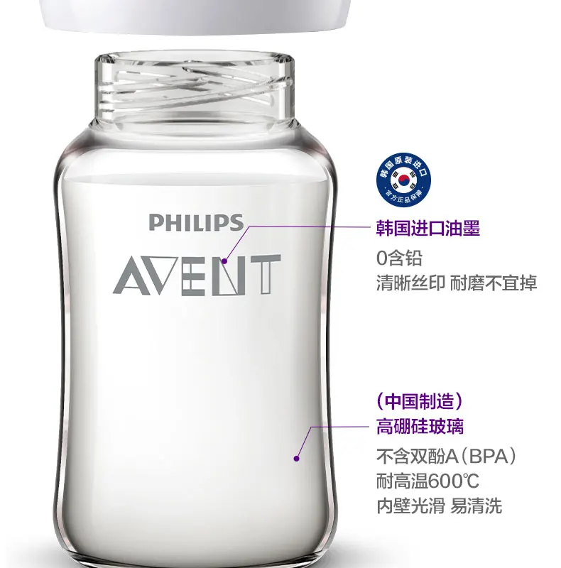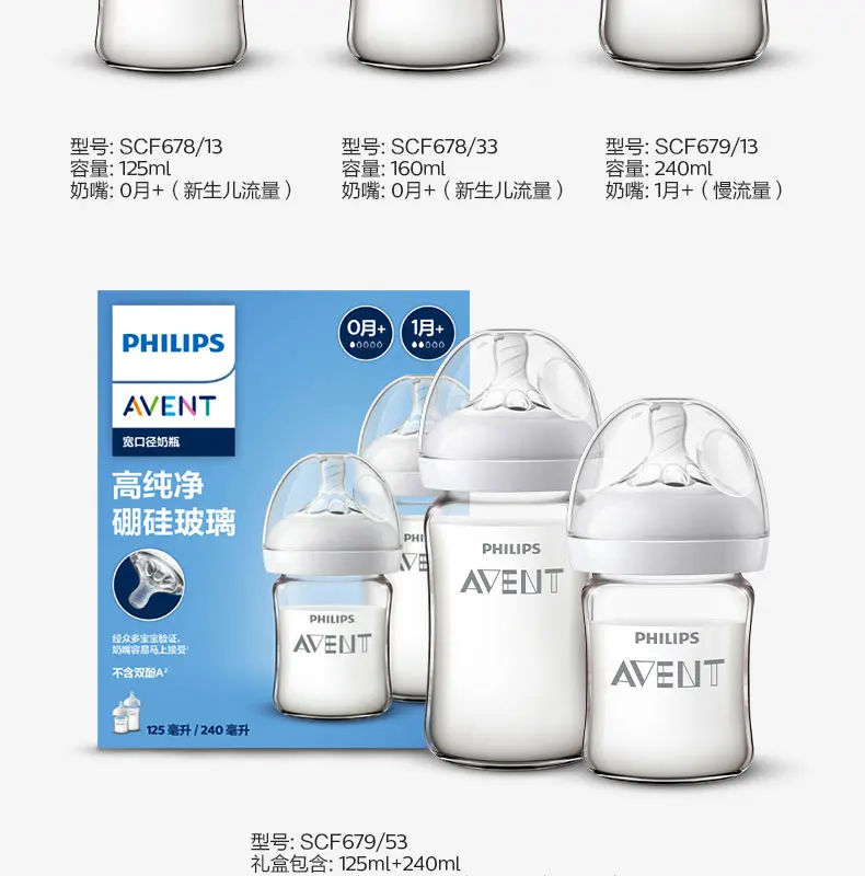 PHILIPS AVENT 신생아 광구경 고 붕규산염 유리 피더, 질식 방지, 0-6 개월 이상, 160ml, 240ml