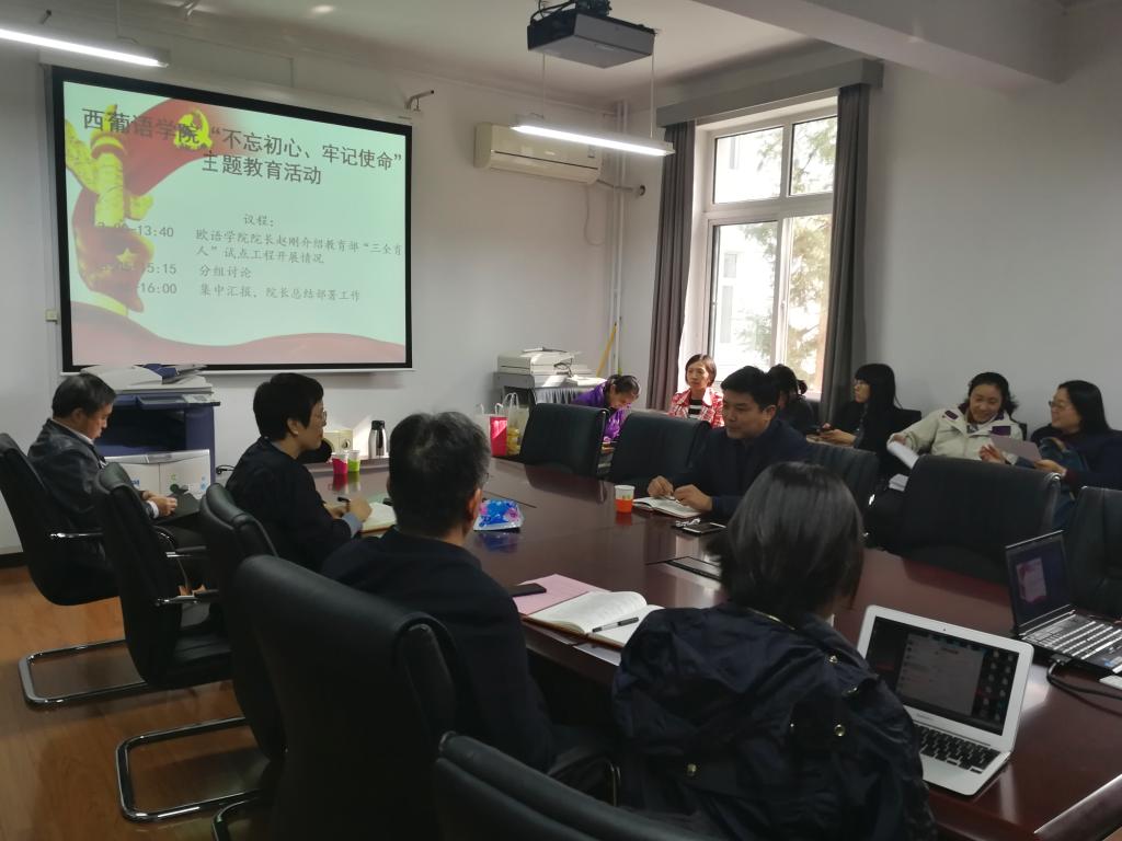 为深入学习贯彻习近平新时代中国特色社会主义思想和党的十九大精神,落实“不忘初心、牢记使命”主题教育要求,10月23日(周三)下午,公司党支部召开“立德树人”专题学习讨论活动,yl23455永利全体教职工参加,党总支常务副书记孙眉主持。