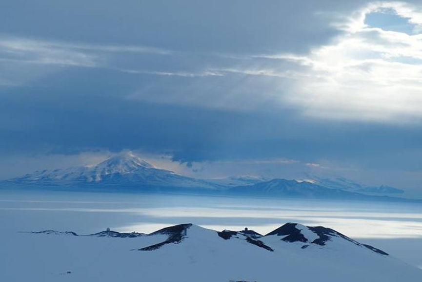 图1.从城堡岩(Castle Rock)眺望,罗斯岛(Isla Ross)至横贯南极山脉(las Montañas Transantárticas),摄于2019南极研究研究生文凭(Postgraduate Certificate of Antarctic Studies,PCAS)课程中。图片来源:亚历克斯·阿韦斯(Alex Aves)